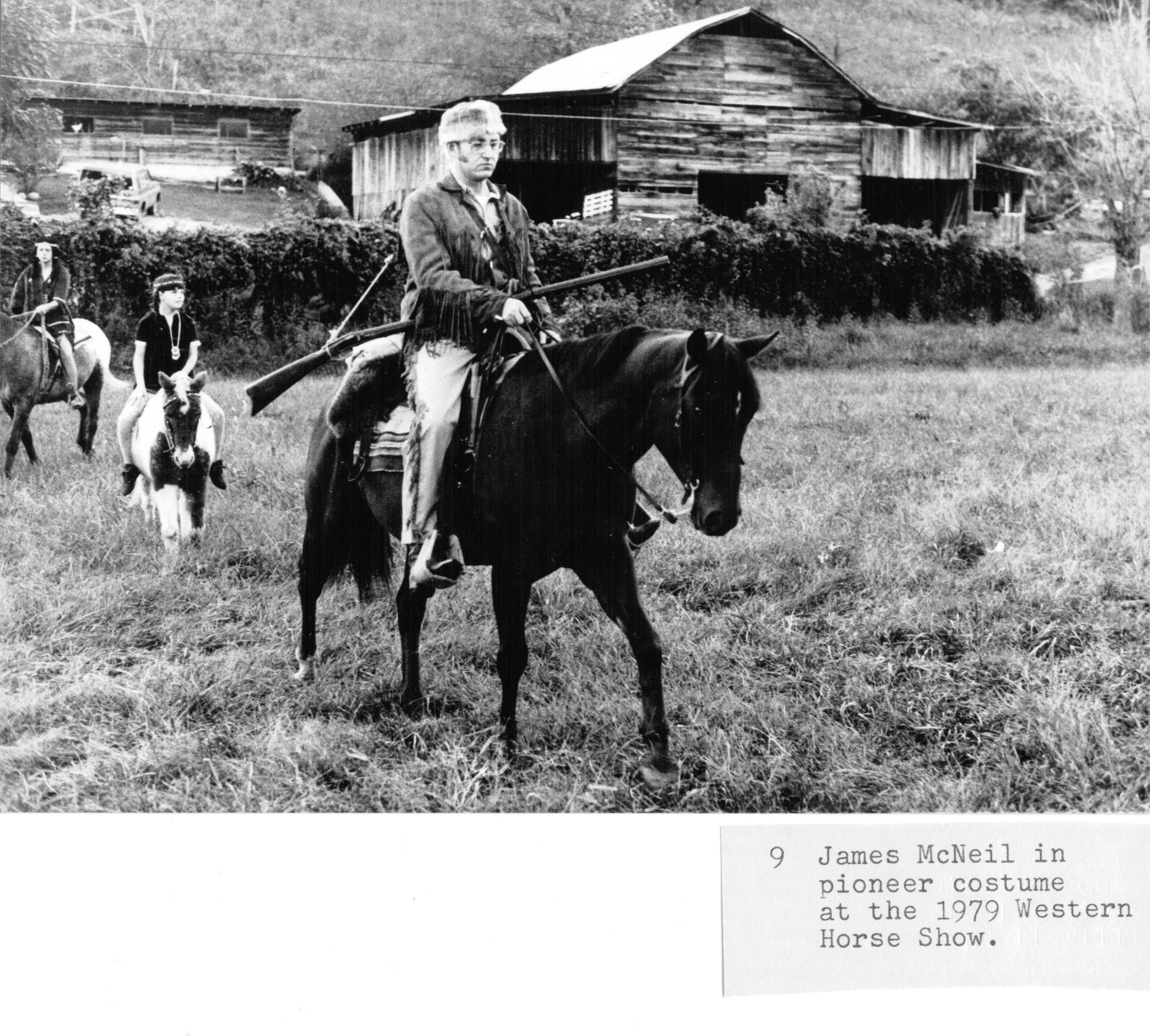 James McNeil in pioneer costume at the 1979 Western Horse Show.