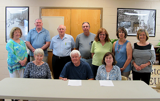 Seated on front row from left are board director Jane Skidmore, 2nd Vice President Michael Mills, and board director Diana Mills. Standing from left are staff members Sheila Halter, Treasurer Doug Bargo, 1st Vice President Charles Reed Mitchell, President Steve Valentine, Patricia Gambrel, Dora Oxendine Farmer, and Jakalyn Jackson. Pictured at right is board director Alvin Jordan. Not pictured are board director David Mills and other active staff members listed below.
